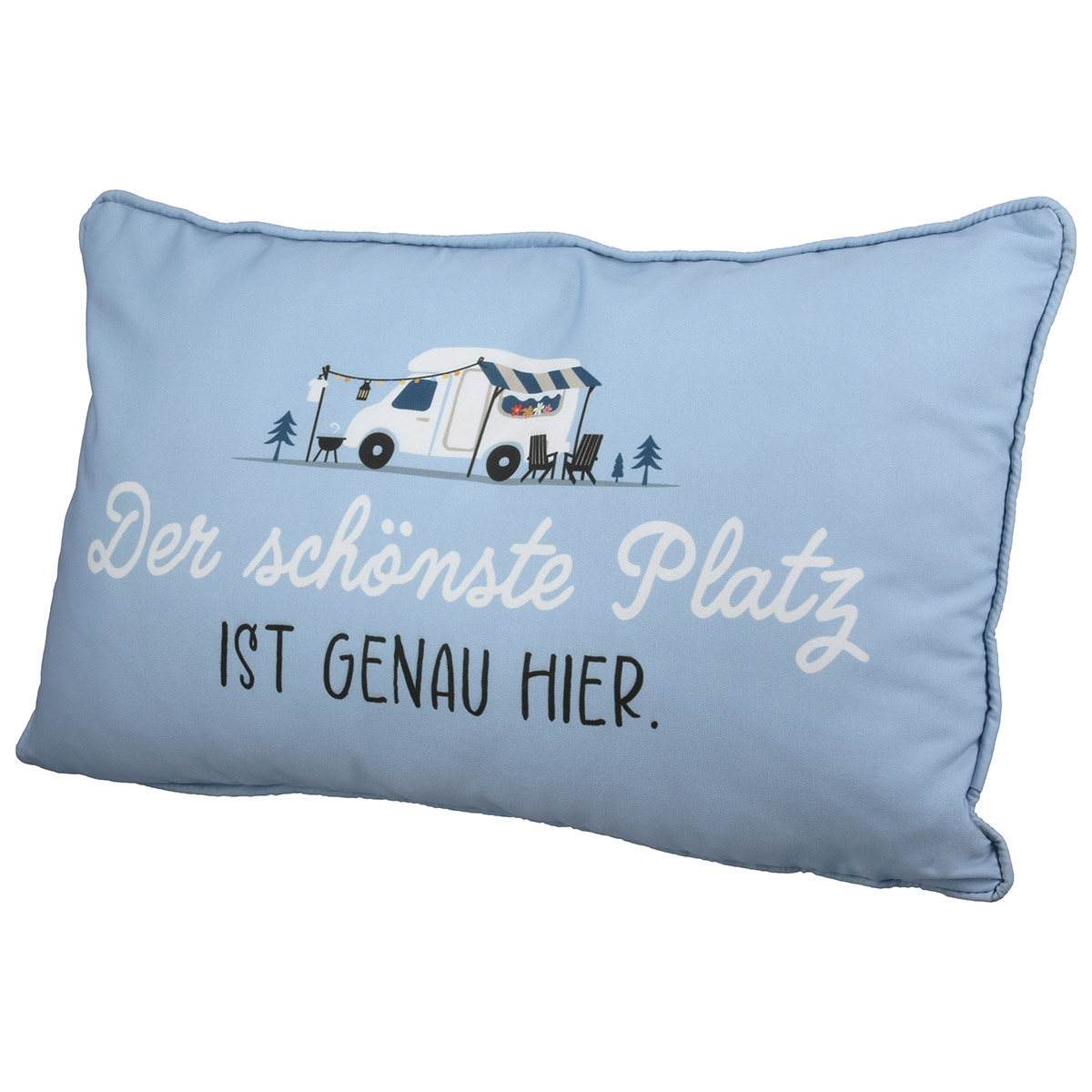 Camping Kissen rechteckig mit Wohnmobil Motiv und Spruch - Der schönste Platz
