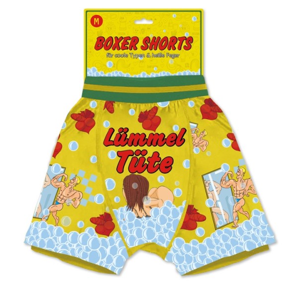 Lustige Boxer-Shorts Lümmel-Tüte, Einheitsgröße, Gelb mit Bademotiv,