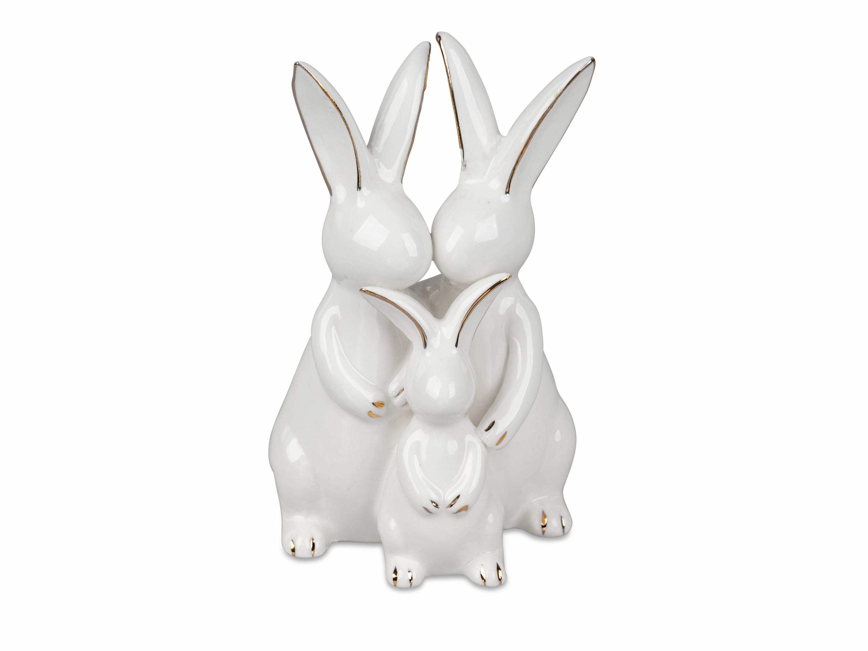 Geschenke und Dekoration zu Ostern- Hasengruppe, Hasenfamilie 14cm in weiss/gold Osterhasen