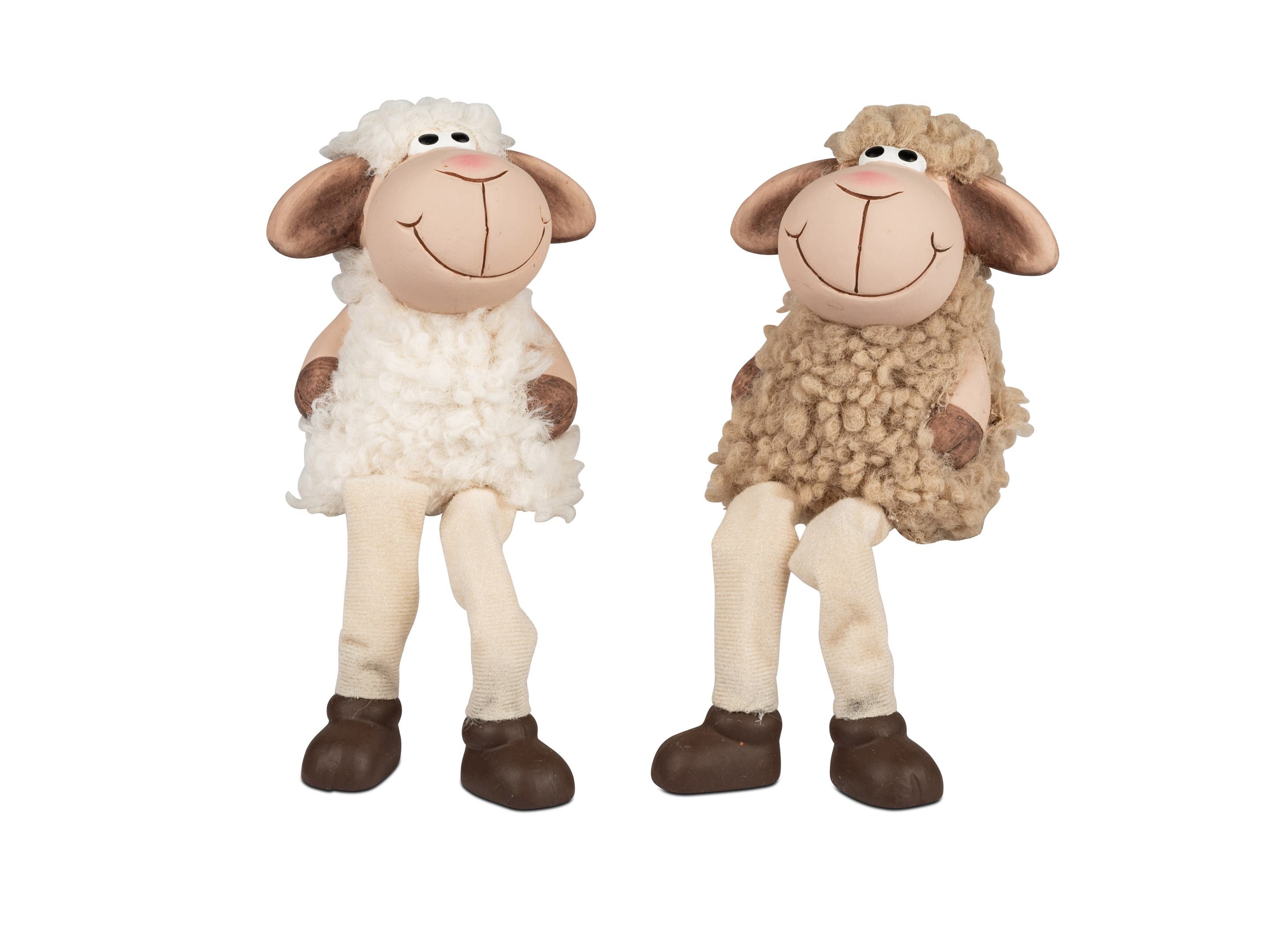 Oster Dekoration Kantensitzer mit Hängebeinen Osterschafe Schafe im Set-2 Stück- mit Wolle 18cm