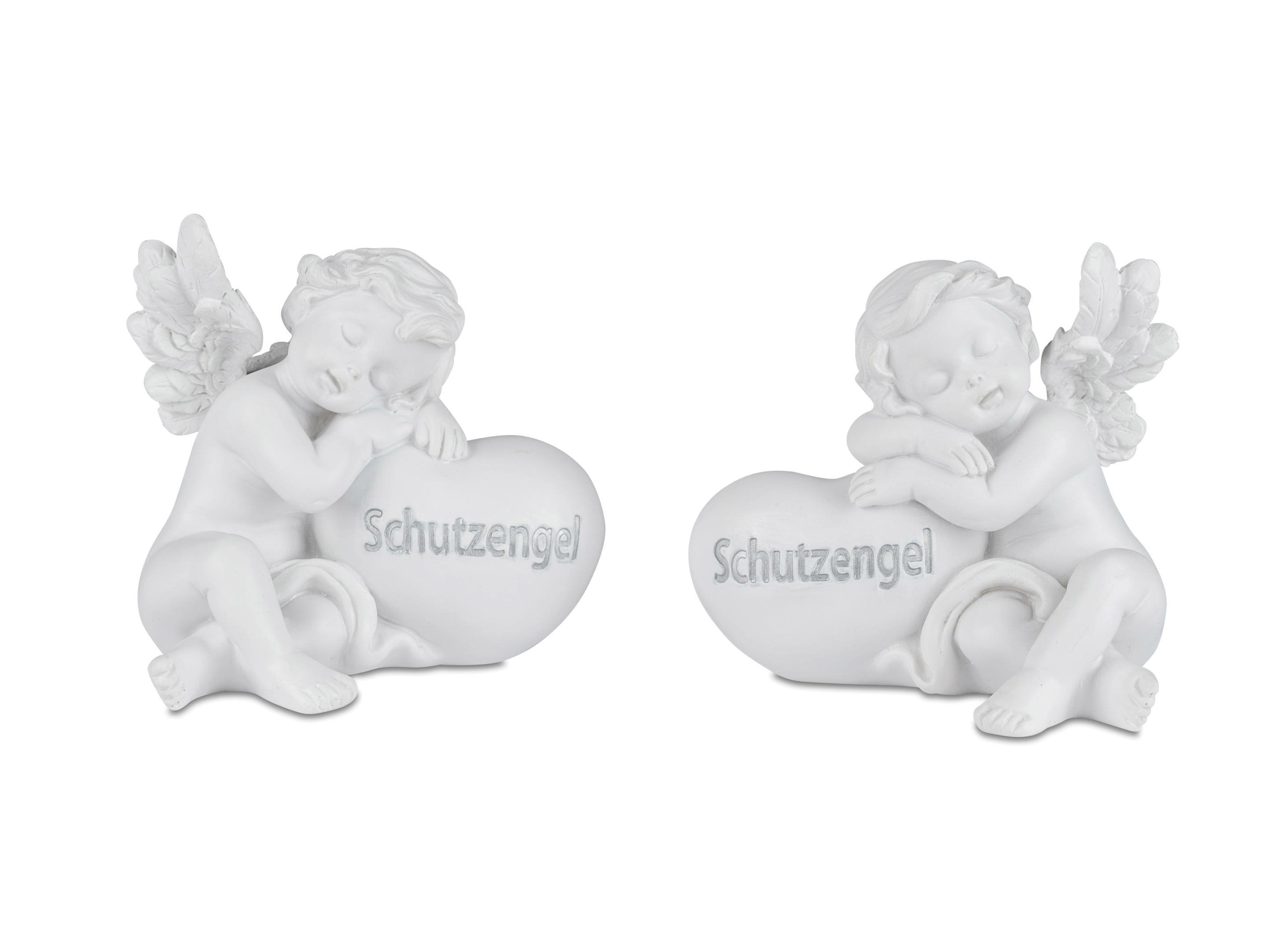 Set bestehend aus 2 Schutzengel Figuren, Weiß-Matt, 10 cm, Kunststein, Handgefertigt, 2 Stück