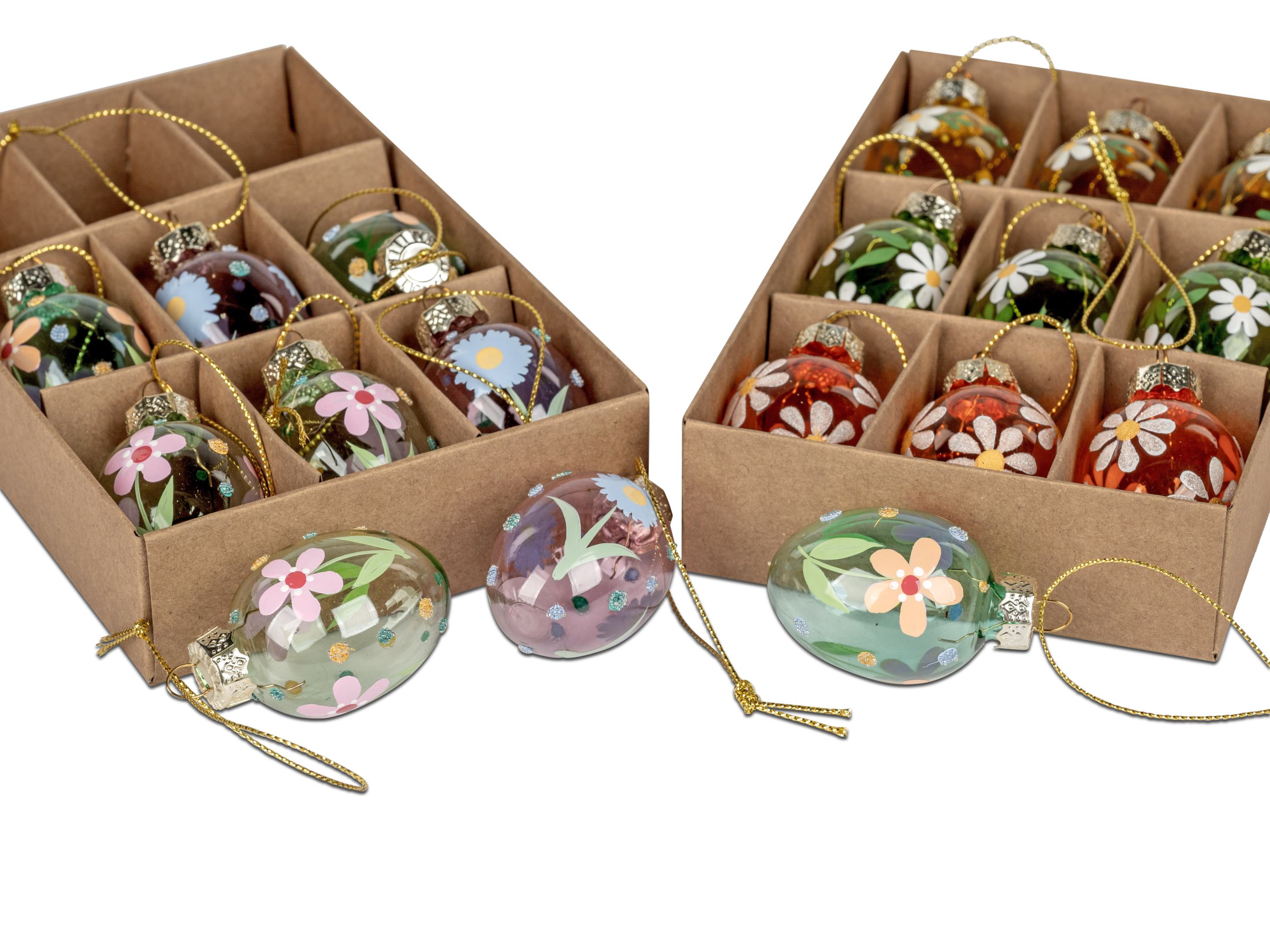 Set Mini Ostereier Set mit Blumendekor, 9 Stück, Glaskugeln für Osterstrauß Dekoration
