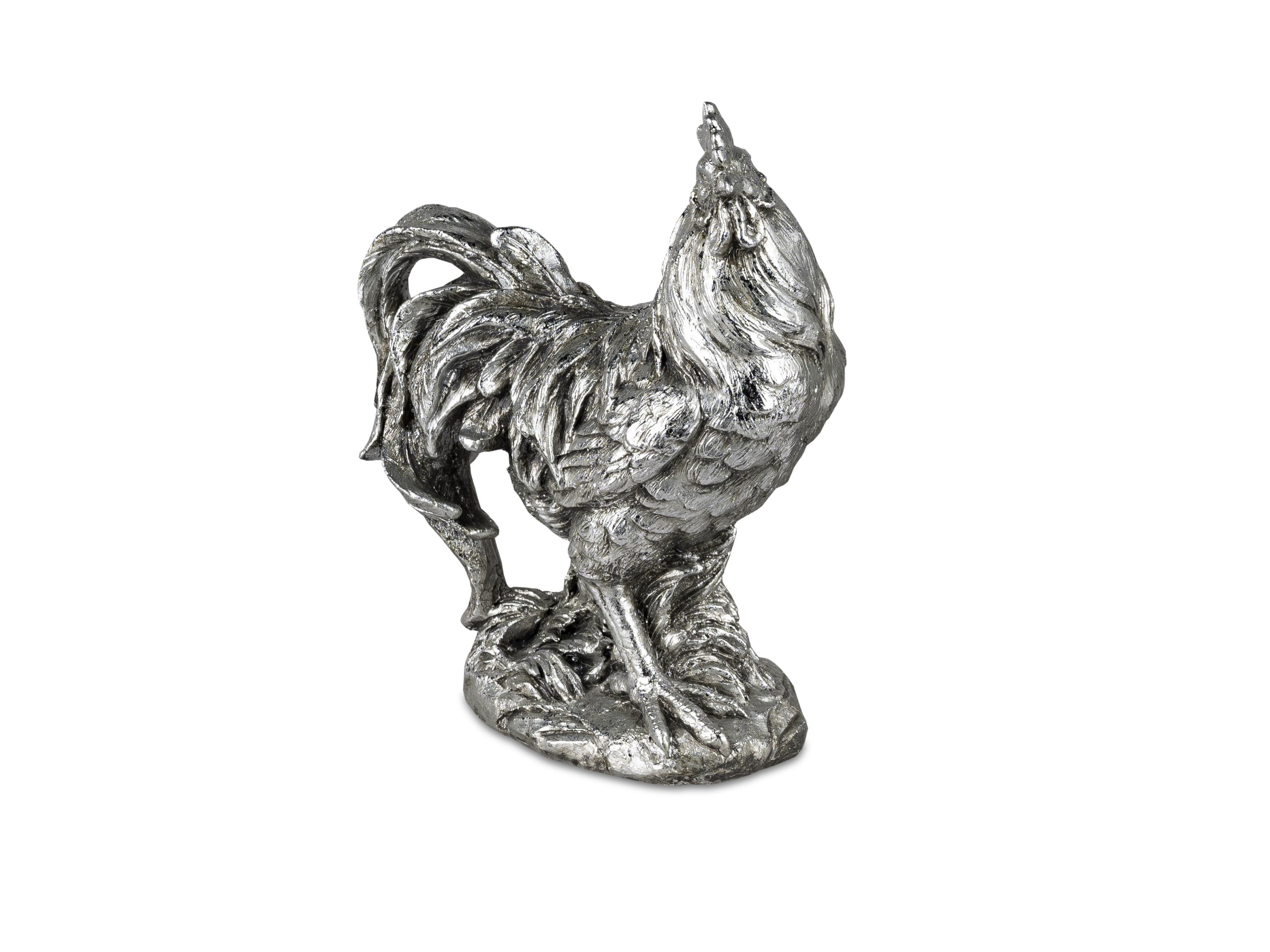 Tierfigur Hahn , Silberfarben, 19 cm, Stolzer Hahn Skulptur- Dekoration für Ostern