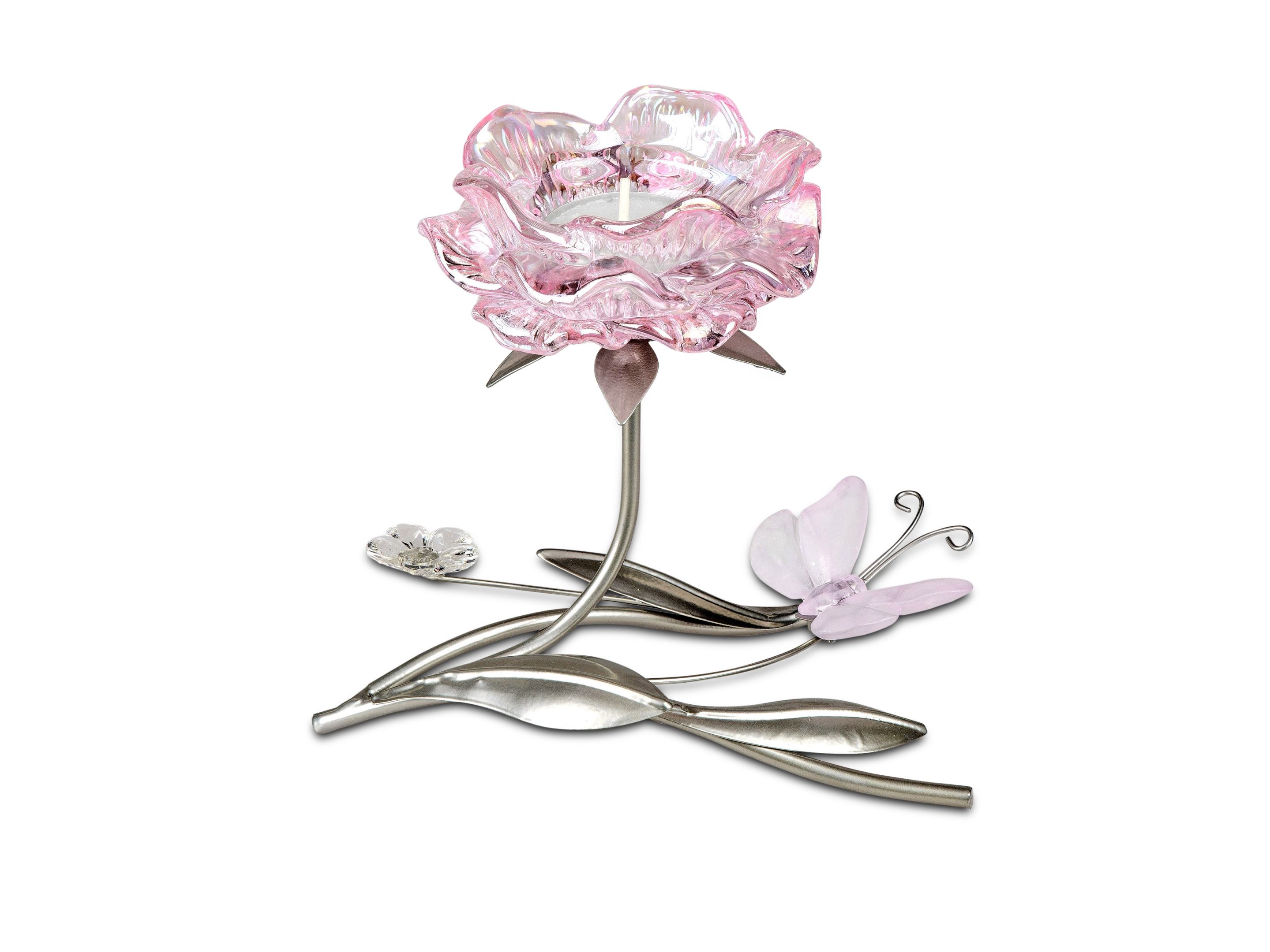 Tischleuchter Teelichleuchter Metall 1 flammig 18cm Glasblüte in rosa