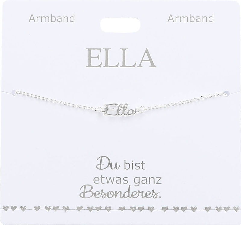 Namensarmband als kleines Geschenk von Firma Depesche. Das versilberte Armband mit Buchstaben,Ella