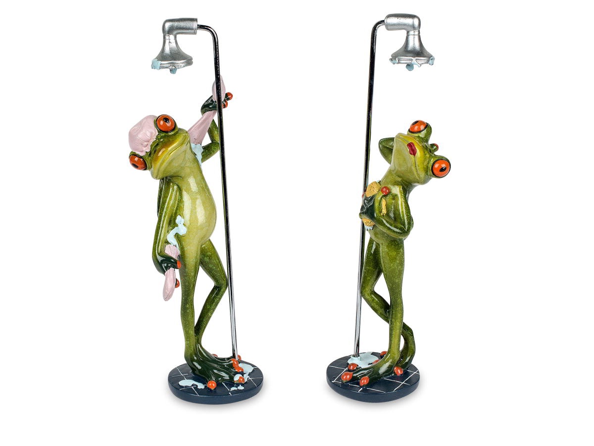 Deko-Figur Frosch in Dusche hellgrün 23cm glänzend Kunststein