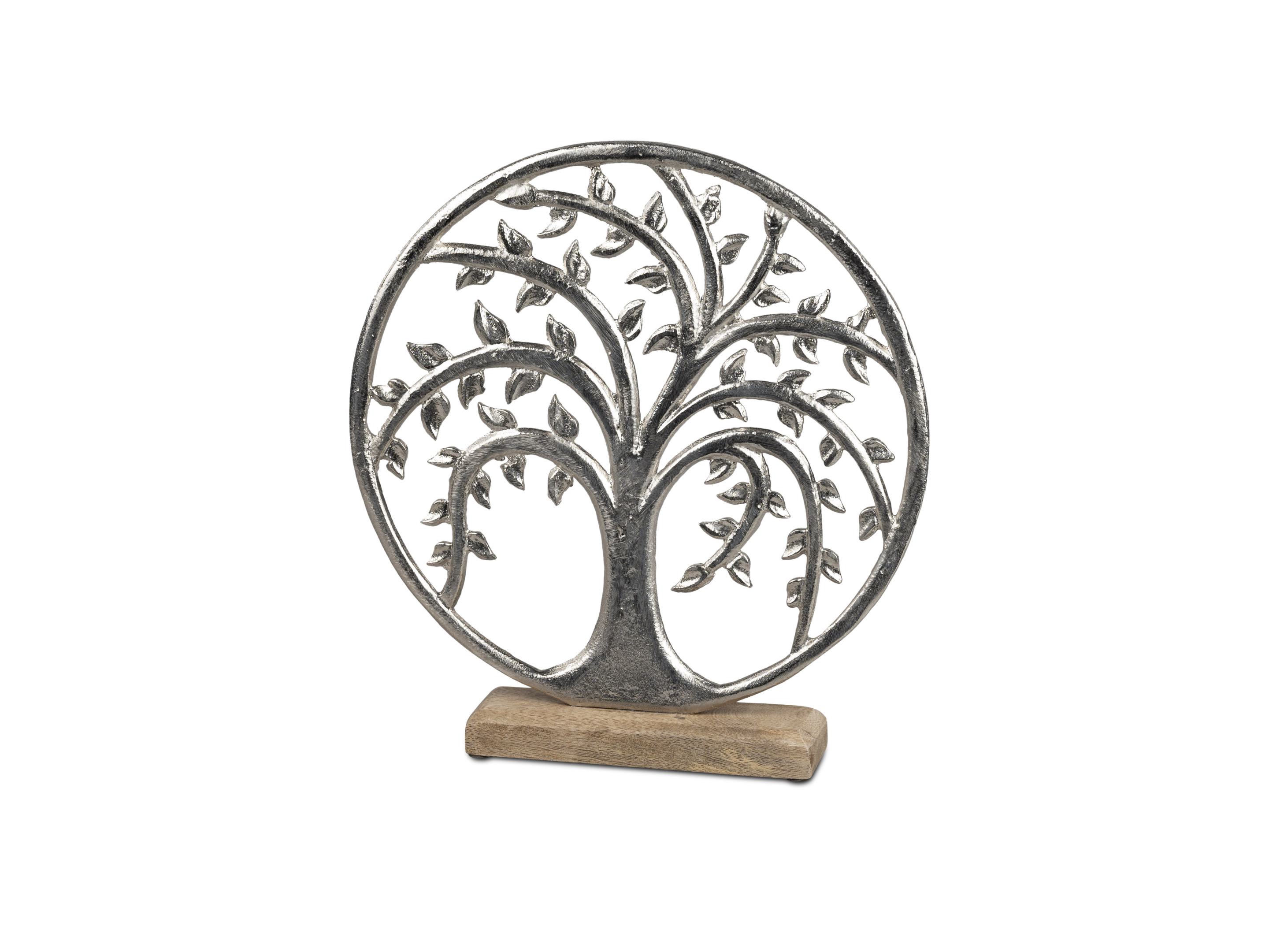 Dekoobjekt Lebensbaum 26cm aus Aluminium und Mango Holz- Geschenke zum Geburtstag, Hochzeit oder Hauseinweihung