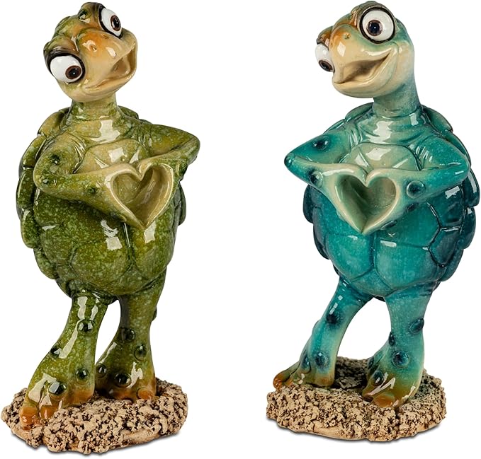 Schildkröte mit Herz bal oder grün 14cm aus Kunststein mit glänzender, handbemalter Oberfläche. Hergestellt aus hochwertigem Polyresin, überzeugt sie mit detailverliebtem Design und realistischen Merkmalen. Ob im Bad,auf der Terrasse oder im Wohnzimmer - diese Schildkröte sind vielseitig einsetzbar. Sie sind wetterfest, langlebig und handbemalt, wodurch jede Figur zu etwas besonderem wird. Sie verleihen jedem Raum eine besondere Note und eignen sich auch hervorragend als Geschenk.Handbemalt: Jede Figur wird von Hand bemalt. Die liebevollen Details und die sorgfältige Verarbeitung machen diese Dekofigur zu einem besonderen Blickfang.
