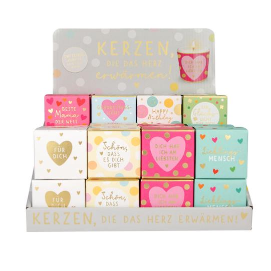 1 Kerzenset in Geschenkbox mit Sprüche - 4 verschiedenen Kerzen im Set mit Gläser