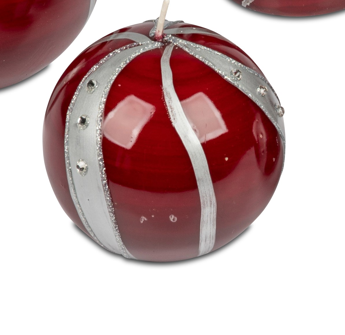 Kerze Kugelkerze silbernem Dekor und Glitzer-Steinen 6cm