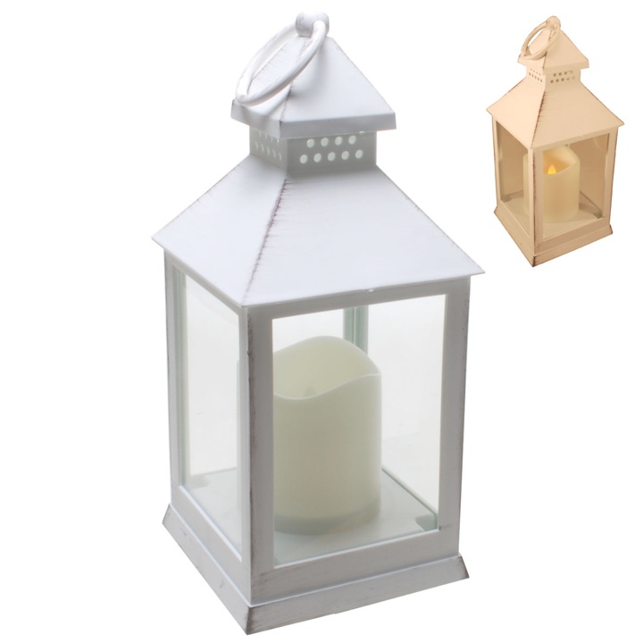 Laterne mit LED-Kerze, antikweiß, mit Timer-Funktion Kunststoff, 24 x 10 cm Lieferung ohne Batterien (3x AAA)