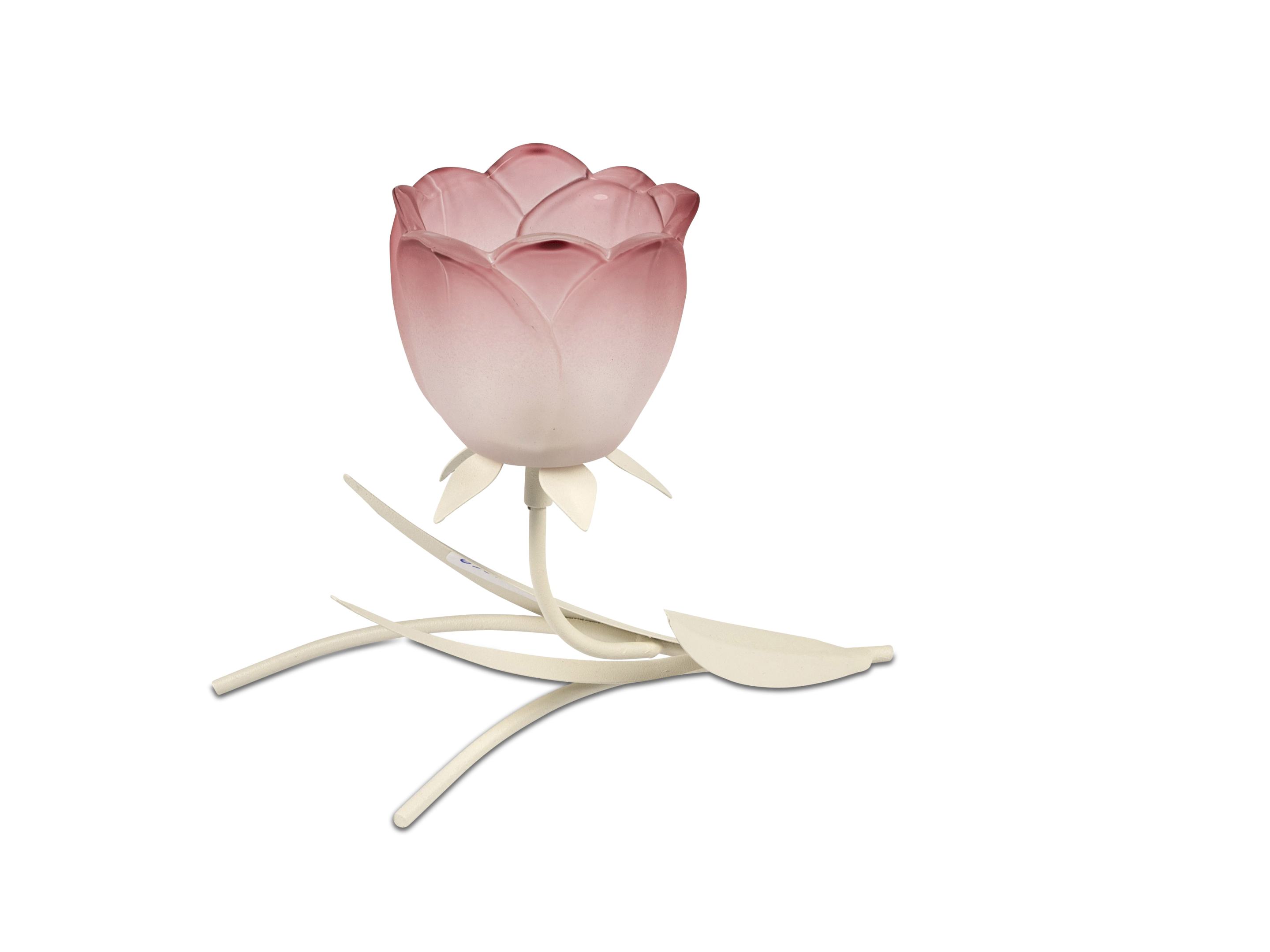 Tischleuchter 1flm. 20cm kunsthandwerklicher Artikel aus cremefarbenem Metall mit matter, rosa Glasblüte kombiniert