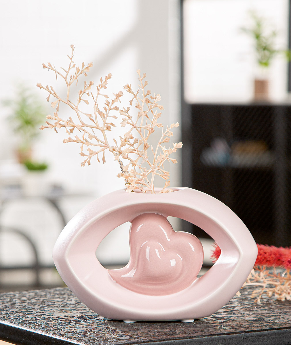 Keramik Blumenvase in Herzform, Rosa, Oval, 8x20x15cm, Dekorative Tischvase