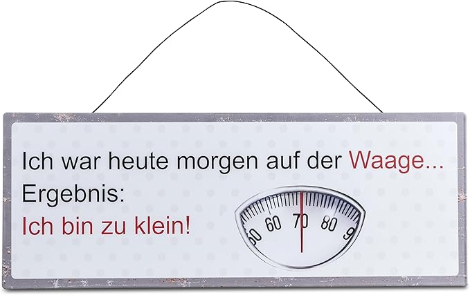 Wanddekoration Wandbild Schild Blechschild 40x15cm mit Spruch,- Waage aus Metall gefertigt-Dekoschild Bild mit Draht-Aufhängung